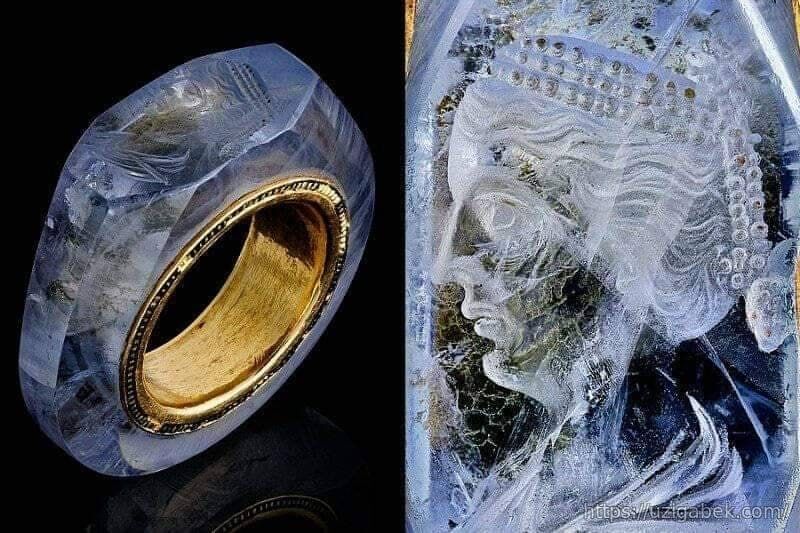 Bir bo'lak safirdan yasalgan uzuk, u bir vaqtlari milodiy 37–41 yillarda hukmronlik qilgan Rim imperatori Kaligulaga tegishli bo'lgan.