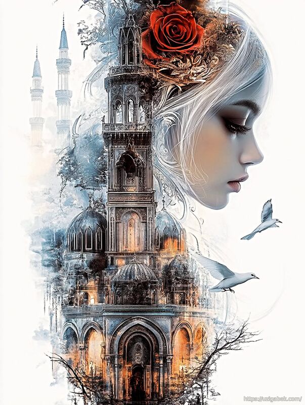 Bosh sahifa » Foto albom » AI-Suniy intellekt-rasmlari » Marmar minora va sohibjamol